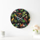 Relógio Grande Papagaios Tropicais Coloridos, Folhas e Flores