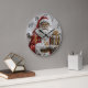 Essa representação encantadora captura o Papai Noel, alegremente apresentando um presente belamente embrulhado em uma mão enquanto a outra embrulha um ornamento brilhante. Adorado em sua roupa vermelha clássica, acentuado com pelo branco, ele irradia alegria de férias.