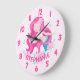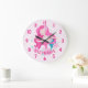Relógio de Parede Grande para Quarto de Fantasia para Meninas com Cabelo Rosa de Sereia. Este design apresenta uma bela sereia do oceano cercada por flores florais. Relógio de parede mágico pastel cor-de-rosa de fantasia para meninas. Personalize este design personalizado com seu próprio nome ou texto.