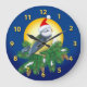 Relógio Grande Pássaro em Santa Hat