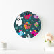 Relógio Grande Pássaros de inverno brincando em neve com boneco d