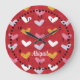 Relógio Grande Pastel Hearts on Red Wall Clock