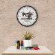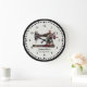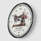 Este relógio de costura na parede é impresso com uma imagem de máquina de costura antiga picada e costurada com restos de tecido falsos brilhantes em um rosto preto e branco nítido e limpo. Personalize o texto no editor fácil do Zazzle para seu entusiasta favorito de costura ou colcha. presente de decoração de parede de excelente para espaço pessoal ou comercial na sua escolha de estilos redondos ou quadrados.