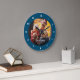 Crie um especial de um tipo de relógio redondo ou quadrado personalizado com sua foto e seu nome de família monograma. O design apresenta cores simples, azuis e brancas, do marinho moderno, ou usa as ferramentas do design para escolher fontes e cores que correspondam ao seu próprio estilo de decoração doméstico. Um relógio personalizado é uma ideia única de presente de Natal para avós, novos pais ou um presente divertido para recém-casados decorando juntos sua primeira casa.