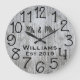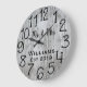 Lindo, único, design personalizado de uma só peça apresenta nomes personalizados "dele" e "dela" em preto em uma fonte cursiva com design sobreposto e o sobrenome e o ano de estabelecimento em uma fonte cursiva em negrito com um fundo de madeira cinza. Personalize este relógio adicionando suas informações pessoais. Faz um ótimo presente de casamento, aniversário ou de inauguração. Clique em "personalizar este modelo" para alterar os nomes, fontes e cores para criar um design único. Que acessório elegante e rústico para sua sala de estar, quarto ou sala de estar. Se precisar de ajuda com a personalização, por favor envie um e-mail para ybnormalone@gmail.com. Obrigado por visitar www.zazzle.com/Personal_Creations. ©Karen Hall para Personal_Creations na Zazzle.