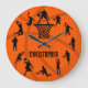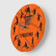 This bold basketball-themed wall clock is a must-have for any hoops fan. Featuring dynamic black silhouettes of players in action—dribbling, dunking, defending—each hour is a moment of game-time glory. The textured orange background mimics a real basketball, while a graphic hoop at the top adds that final touch of court-side cool.