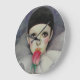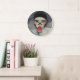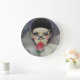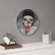 Relógio redondo de parede acrílica de 10,75" com uma imagem vintage do palhaço triste Pierrot em cinzas segurando um botão rosa rosa com uma lágrima no olho. Pierrot é um personagem que evoluiu na aparência com romântico, decadente, simbolista e início do Teatro e Arte Modernista. Essa imagem é a imagem popular de Pierrot nos anos 1980. Veja toda a coleção Tubular 80s Clock no DECOR | Seção Relógios.