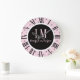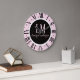 This elegant wall clock features a soft pink and black bow design paired with a personalized script monogram for a refined, timeless look. Designed with clean typography and a balanced neutral palette, it complements modern offices, bedrooms, and thoughtfully styled home spaces. The minimalist composition offers quiet sophistication, making it ideal for professional environments, personalized décor, or elevated gifting. A subtle statement piece that blends function with understated luxury.