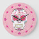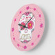 Fundo cor-de-rosa, crânio de açúcar central e face de relógio feita de corações