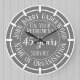 Banner de fundo de aposentadoria com anos servidos. Mostra o nome da aposentadoria, nome da empresa ou organização e duração do serviço. Prateado e branco sobre o fundo da Cinza.