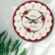 Adicione um toque de elegância romântica a qualquer quarto com este relógio floral personalizável. Apresentando uma bela coroa de rosas vermelhas e folhas verdes cercando texto personalizável. O design clássico e a paleta de cores quentes criam uma atmosfera convidativa, fazer que seja fácil ler o tempo enquanto adiciona um toque pessoal ao seu decoro doméstico. Um presente na moda e único para aniversários, refeitórios ou qualquer ocasião para celebrar família e amor.