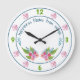 Características florais da primavera uma luz, design floral elegante. Flores e folhas adoráveis das características deste pulso de disparo de parede, com um olhar macio da aguarela. Os doze, os três, os seis e os nove são um verde amarelo, para combinar as folhas; quando os números restantes forem substitui com uma flor. O texto, lê no centro, a "felicidade floresce de dentro de" e pode personalizado com seu próprio texto.