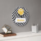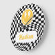 Um sorriso de aniversário de um cara feliz face a um relâmpago preto, branco e amarelo de rancho legal relógio de decoração de festa de aniversário.