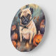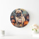 Relógio Grande Pug De Halloween Com Pumpkins Assustado