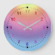 Cores do arco-íris em arcos invertidos: Verde em muito superior ao azul no fundo. Os numerais que marcam horas estão em cores similares de cima para baixo. Os minutos são identificados por meio de números pretos pequenos.
