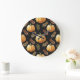 Relógio Grande Pumpkin Black Background Watercolor Patterno