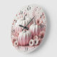 Relógio Grande Pumpkins rosa e flores com números romanos