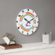 Este relógio divertido apresenta um arco-íris vibrante que forma uma moldura circular para um nome personalizável, acentuado por nuvens fofas e estrelas douradas.