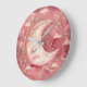 Este relógio de parede grande e encantador apresenta um design de lua rústica com tons suaves de vermelho. Sua superfície única e texturizada adiciona calor e caráter a qualquer quarto. Perfeito para o quarto de uma criança, berçário ou qualquer espaço que precise de um toque de decoração caprichosa, clássica e colorida.
