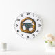 Keep track of time in style with this clock featuring the colorful cartoon racing steering wheel controller graphic. This unique wall decor is perfect for a gamer's room, garage, office, or man cave. The fun, hand-drawn illustration adds a retro gaming aesthetic to any space. A great time-telling accessory for car and simulation game fans.