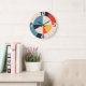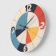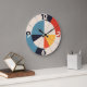 Radial Order is a Bauhaus-inspired wall clock artwork built from precise geometric relationships and a disciplined color system. Primary-muted tones—red, blue, yellow, black, and warm off-white—are organized on a strict radial grid, with bold numerals integrated directly into the composition rather than applied as decoration. The result emphasizes clarity, balance, and legibility at distance, reflecting Bauhaus principles of function-led design and visual economy. Crisp edges and noise-free surfaces ensure the form reads as a timeless graphic object as much as a clock face.
