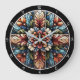 This captivating wall clock features an intricate stained glass design of a cross, adorned with a vibrant explosion of colorful, abstract floral and leaf patterns. The brilliant hues and detailed artistry create an uplifting and captivating piece, perfect for adding a touch of faith and radiant beauty to any room. Edit color of the clocks numbers in the Design tool to your favored colors.