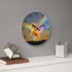 Arco-íris chegando à Terra e emergindo como um cavalo, unicórnio, mistura de fantasia pegasus no relógio das cores do arco-íris na parede