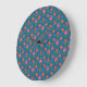 Relógio Grande Rangoli Flores Bolinhas Blue Round Wall Clock