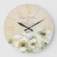 Relógio Grande Ranunculus Brancos Rustic Watercolor