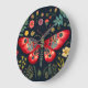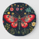 Uma mariposa Vermelha Vibrante ao fundo de um misterioso jardim noturno.