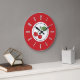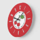 Este relógio retrô tem cerejas vermelhas e uma borda vermelha.