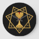 Estrela de Babalon, logotipo OTO Dourado, Relógio com fundo preto.