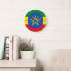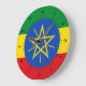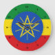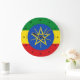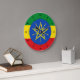 Relógios de Parede com bandeira da República Democrática Federal da Etiópia, bandeira verde amarela e vermelha com emblema nacional azul com pentagrama amarelo com cinco raios luz