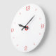 Um relógio de parede de cozinha branco fresco muito simples com números vermelhos em fonte geométrica x.