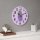 Um monte de uva púrpura em caule com folhas, pintando, é impresso em relógios de parede personalizados. O relógio tem grandes números negros. A cor de fundo da lavanda pode ser personalizada. Obrigado por comprar em CherylsArt no Zazzle.