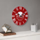 Relógio clássico vermelho e branco para o restaurante ou cozinha de gourmet apresenta um chapéu ou "toque" de chef francês e pratos de prata.
