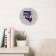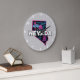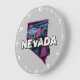 O moderno relógio da parede redonda apresenta a silhueta do estado de Nevada no estilo retrô com linha do horizonte icônica e o sinal de Las Vegas.