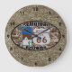 Coloque uma peça de conversa na sua caverna, oficina ou parede de garagem com este relógio personalizado de parede acrílica de 10,75 polegadas que esporta um Seligman nostálgico, design de tipo adesivo oval da Rota 66 sobre um fundo arenoso texturizado. A colagem oval de design é composta por uma fotografia de uma parede de poço ao longo de um segmento caminhável da Rota 66 em Parks, AZ como fundo e os dois emblemas são de uma fotografia da Arizona Rota 66 Histórica dos EUA. O fundo arenoso e os números são itens de modelo para que você possa limpá-los se quiser este design de relógio sem números e se quiser uma cor de fundo sólida. Clique na laranja Personalizar! para adicionar texto como um nome, família ou nome comercial ou cotação. Verifique as opções menores de 8 polegadas de diâmetro e quadrado de 10,75 polegadas para o design.