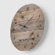 Aqui está um aspecto e textura rústicos de grãos de madeira de meteoros com números pretos e mãos de relógio. O nome da família, ou qualquer texto que queira, é personalizado perto do fundo. Decoração perfeita para a cabana da família ou para o RV.