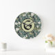 Relógio Grande Sage Green Chinoiserie Floral White Initial