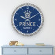Relógio Grande Sala Real Príncipe Faux Silver Glitter Crown Boys