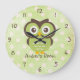 Um relógio de Bolinhas verde com coruja verde, perfeito para o quarto de uma menina. Personalize com o nome dela.