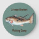 Este pulso de disparo é a adição perfeita para a decoração de todo o amante da pesca de esportes. O pulso de disparo caracteriza um salmonetes artístico, ponto tirado pelo ponto à mão no computador, em um fundo azul verde outdoorsy.
