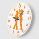 Este relógio de parede personalizado único é perfeito para amantes de dança latina que pensam que qualquer momento é o momento perfeito para dançar! O relógio tem uma silhueta laranja de um casal girando ou subaquecendo. Há pontos para os minutos e números laranja. Clique em personalizar para alterar o estilo ou a cor da fonte dos números. Você pode alterar a cor de fundo se quiser personalizar o relógio. Mais relógios personalizados com salsero, salsera e designs dançarinos na seção Dancing no Lápis de Alina.