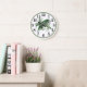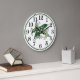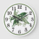 Relógio redondo de parede acrílica de 10,75" com uma imagem vintage dos anos 40 de Lilões brancos delicados do Vale. Fronteira verde. Veja toda a coleção de Relógios de Dias de as mães no DECOR | Seção Relógios.