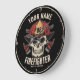 Design do corpo de bombeiros personalizado do bombeiro - Esqueleto com capacete vermelho e eixos duplos. Personalize com seu nome, número de estação/departamento e local.