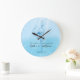 Inspire seu dia com um moderno relógio de parede com lamentações 3:23 "Seus compaixões são novos todas as manhãs, Excelente é sua fidelidade." Este design combina uma elegante flor de arte de linha com o brilho macio da luz do sol matinal e um pano de fundo azul tranquilo.