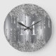 Relógio Grande Silver Glitter Drips Monogram Personalized