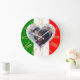 Este relógio de parede personalizado apresenta um tema de amor ou casamento italiano com uma estrutura em forma de coração. A bandeira de Itália é colocada no verso com um quadro cardíaco marcado. Uma amostra de foto de um ou mais casais casados ou engajados é colocada no centro. As horas são impressas em folha de ouro falso em numeração romana.