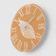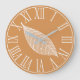 Tenha um estilo elegante de outono em sua casa com este esqueleto de folha branca e um relógio de fundo laranja rústico com numerais brancos romanos.